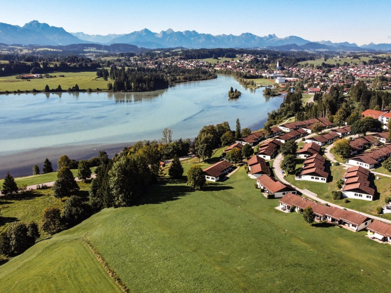 Im Sommer zeigt sich die Region von ihrer sonnigen Seite: Die Seen rund um Lechbruck laden zum Baden & Entspannen ein, mit kristallklarem Wasser und herrlicher Alpenkulisse.