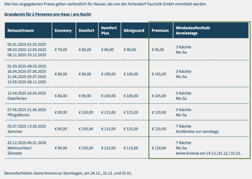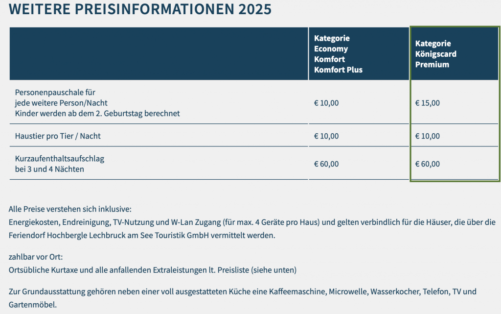Es gelten die Preise der Premium Kategorie – Bettwäsche sowie Handtücher sind inklusive.